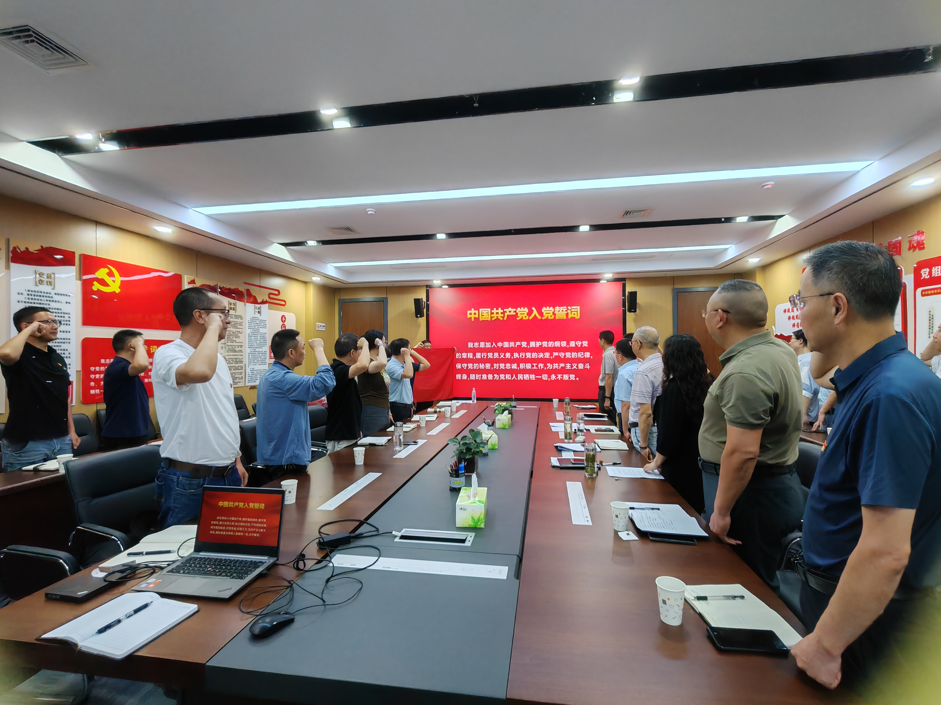 大會在莊嚴(yán)的國歌聲中開幕。與會人員面向黨旗莊嚴(yán)宣誓,在鏗鏘誓言中重憶入黨初心、堅(jiān)定理想信念。