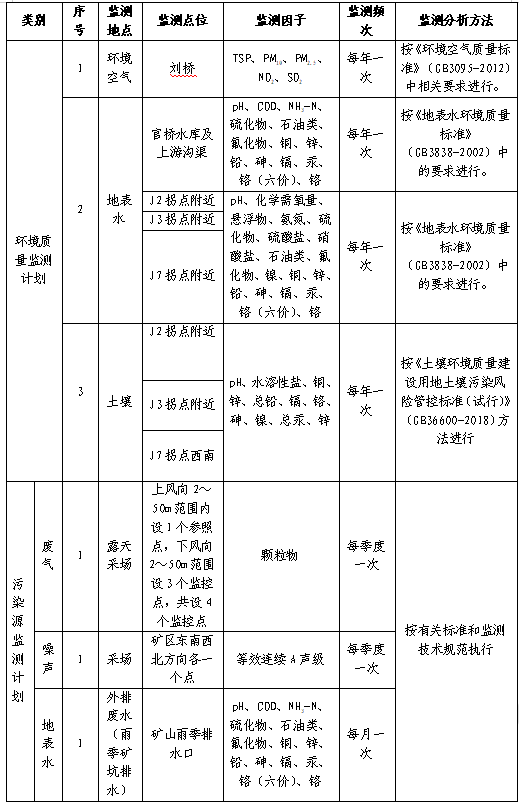 (6)招標范圍及內(nèi)容:對興天礦業(yè)諭興礦進行環(huán)境監(jiān)測和檢測,包括但不限于土壤、地下水、廢水、廢氣、噪聲等污染源進行監(jiān)測和檢測,每月出具監(jiān)測和檢測報告。監(jiān)測和檢測報告需滿足各級主管單位、國家法律法規(guī)、行業(yè)檢測標準、《滁州市興天礦業(yè)有限公司安徽省天長市諭興地區(qū)建筑用玄武巖礦年產(chǎn) 800 萬噸露天采礦項目環(huán)境影響報告表》中所涉及范圍等要求,保證審批順利通過。