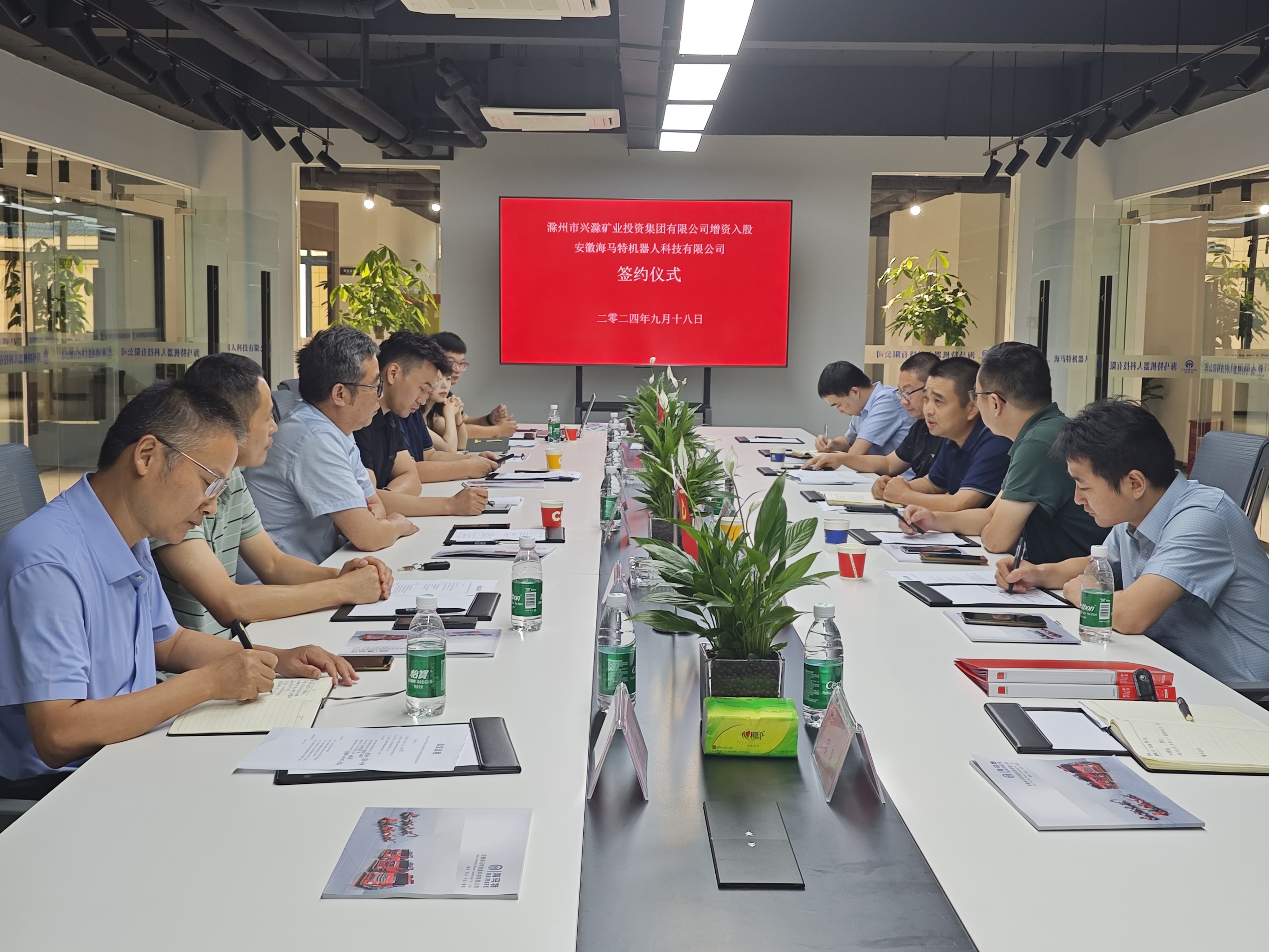 9月18日下午,市礦投集團(tuán)增資入股安徽海馬特機(jī)器人科技有限公司簽約儀式在天長(zhǎng)市舉行。市礦投集團(tuán)黨委委員、副總經(jīng)理湯國(guó)水出席簽約儀式并講話,天長(zhǎng)市科技局、滁州市創(chuàng)新驅(qū)動(dòng)發(fā)展研究院、中國(guó)科學(xué)技術(shù)大學(xué)火災(zāi)科學(xué)國(guó)家重點(diǎn)實(shí)驗(yàn)室等相關(guān)部門負(fù)責(zé)人參加本次簽約儀式。