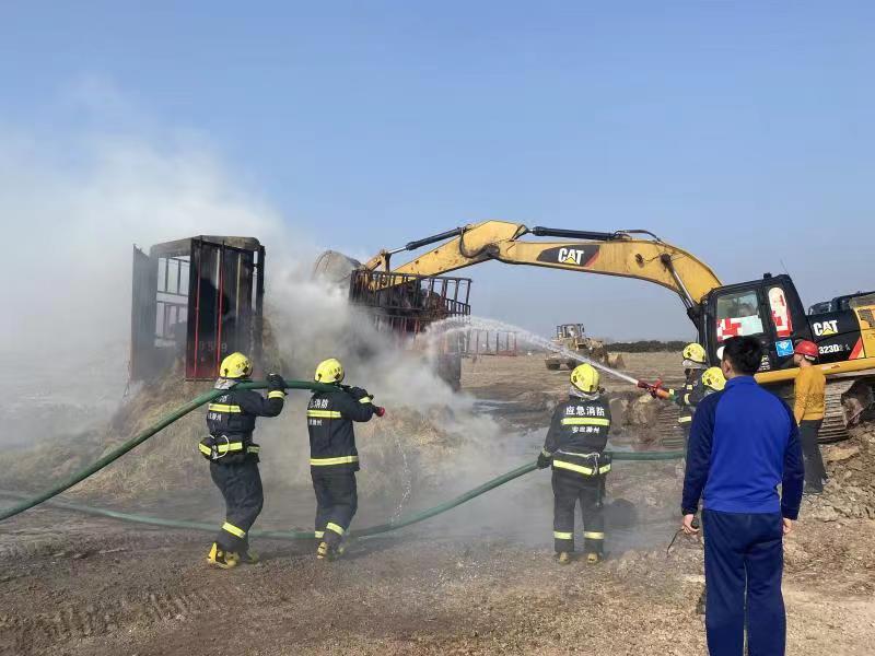 11月16日中午12時許,澗溪鎮(zhèn)姚郭村澗官路路口一輛滿載稻草的貨車不慎刮到路邊高壓電線引發(fā)稻草著火,情急之下,貨車司機將車輛開往巢東礦區(qū)磅房尋求救援。興明礦業(yè)總經(jīng)理王秀超得知火情后,立即啟動火災(zāi)應(yīng)急預(yù)案,安排磅房工作人員撥打119火警電話,并在短短的3分鐘內(nèi)抽調(diào)了巢東礦區(qū)10余名工作人員、2臺灑水車和1臺挖掘機,第一時間趕往現(xiàn)場救援。興明礦業(yè)職工冒著滾滾濃煙,沖進火場現(xiàn)場,克服煙熏火燎等重重困難,奮力滅火,在消防官兵趕到前,有效阻止了火勢蔓延。隨后在與消防救援專業(yè)人員協(xié)同下,經(jīng)過1個多小時的不懈努力,終于把大火撲滅。